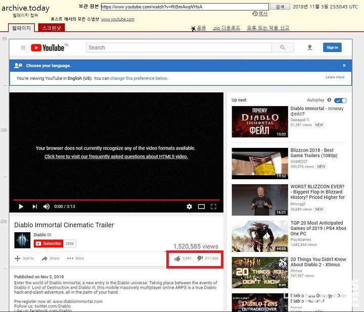 블리자드 엔터테인먼트, 모바일 mmo 액션rpg '디아블로 이모탈' 공개. 디아블로 시리즈의 모바일 버젼으로, 제작진은 인터뷰에서 디아블로2 부터 디아블로3 사이가 스토리의 배경이 될 것이라고 밝혔다. 디아블로 이모탈 발표 직후에 벌어진 일이라 디아블로 이모탈에 불만을 품은 팬덤은 이게 다 디아블로 이모탈 때문이라는 식으로 그래프를 해석했다. 블리자드가 개최한 올해 블리즈컨의 대미를 장식한 건 모두의 예상대로 디아블로였다. 그러나 디아블로 이모탈의 발표가 주가 하락의 다양한 요인 중 하나로 작용했을 가능성은 있을지도 모르지만, 오로지 디아블로 이모탈 때문에 주가가.