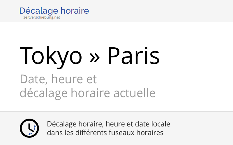 Monde du voyage vous informe sur le décalage horaire entre la france (fuseau horaire europe/paris) et le japon (fuseau horaire asia/tokyo), également le décalage horaire du japon par rapport à l'heure internationale gmt (heure moyenne de greenwich. Durant la période où l'heure d'été est appliquée en france (de mars à octobre) le japon a 7 heures d'avance par rapport à la france. Au japon, le décalage horaire par rapport à la france est de +7 heures en été et +8 heures en hiver. Le japon a 7 heures plus de décalage avec la france. Décalage horaire, heure et date locale dans les différents fuseaux horaires.